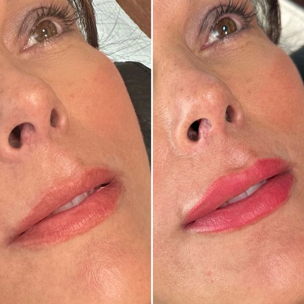 This cosmetic tattoo technique is great for someone who needs to restore color to lips, add symmetry to the lips, or needs a more definite lip shape. Blushing is done with tattoo machine shading to add subtle color into the lip skin for a natural, defined lip color.